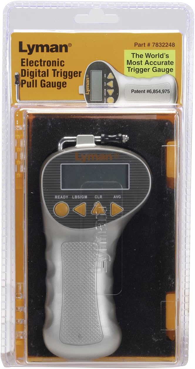 מד משיכת ההדק הדיגיטלי המהפכני של Lyman נועד להיות מד משיכת ההדק המהיר והמדויק ביותר שקיים. טכנולוגיית מד המאמץ המתקדמת מאפשרת דיוק של 1/10 אונקיה או 2 גרם. המד יקרא עד 12 ליברות/5.4 ק"ג וכולל צג LCD גדול וקלה לקריאה. להפעלה, פשוט לחצו על כפתור המוכן, חברו את הגלגלת סביב ההדק של כלי הנשק שלכם ומשכו עד שההדק ישתחרר. (ודאו שהנשק אינו טעון). המד יציג ויחזיק את משקל משיכת ההדק המדויק. לקריאה חדשה, פשוט לחצו על כפתור המוכן וחזרו על הפעולה. המד גם ייתן לכם ממוצע של עד 10 הקריאות האחרונות. עברו מאונקיות לגרמים בלחיצת כפתור. מוט המתכוונן במלואו עובד על כל כלי נשק. זהו הכלי המושלם לבעלי נשק , למדריכי ירי, יורים ספורטיביים, יצרני נשק, או כל מי שרוצה להתאים את משקל משיכת ההדק שלו בצורה מדויקת וקלה. עובד עם סוללה 9V אחת (לא כלולה). הערה: אנא עיינו במדריך למשתמש לפני השימוש במוצר.